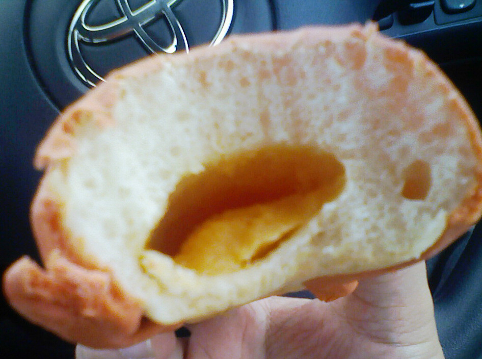 不気味な色(明太子色?)でコーティングされたパンが・・・
